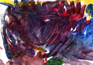 So where the gift begins is a day of painting on the kitchen table. Alexis, Josiah, Isaiah and Caleb were painting pictures with tempera paint at our kitchen table. My wife often would allow them to paint and do other crafts. Caleb loved to do whatever his older siblings were doing and painting was one of his favorites. Anything messy actually. Though I was not there at the time because I was at work, my wife would relay the story to me weeks later after she was looking at the paintings on the freezer in our kitchen. After Caleb passed away, my wife approached the paintings because she knew Caleb painted one of them that day. The problem is even though Caleb had his very own painting he was working on in the color red, Isaiah our four year old son had painted over a lot of Caleb’s work but not all of it. As my wife studied the painting reflecting on that day, her eyes were drawn to a small set of foot prints on the left side of the painting. Could they be Caleb’s?
